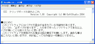 Version 1.00b 2004/09/26 ReadMe.txtの記述を修正 Version 1.00 2004/01/15 一般公開 Version 0.09 2003/02/23 ベータ完成written by MA-SoftStudio